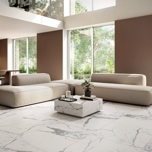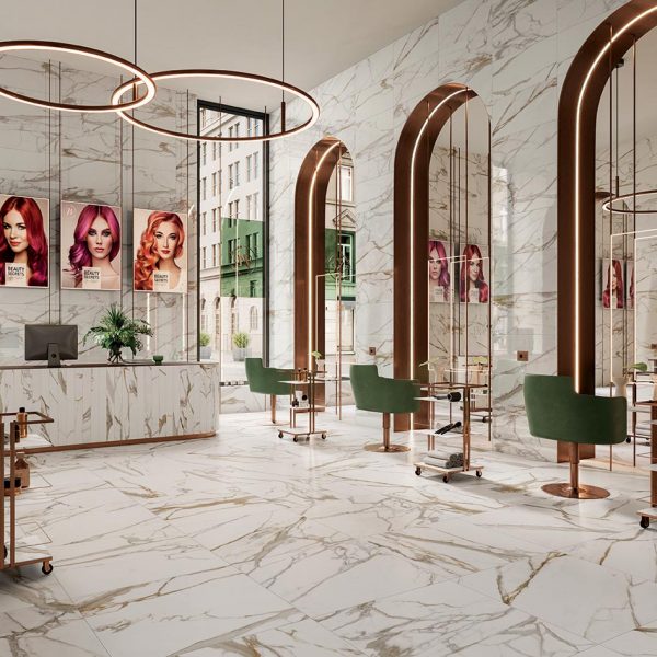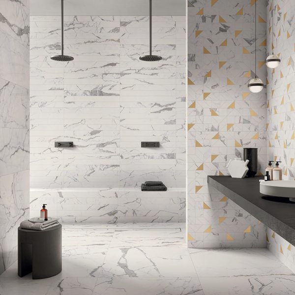 Der aus Keramik hergestellte Marmor kann alle Varianten des Natursteins nachahmen : Die Kontrolle über die endgültige Ästhetik des Produkts ist ein wahrer Vorteil, da jede Fliese das Ergebnis eines sorgfältigen und durchdachten Designs ist.