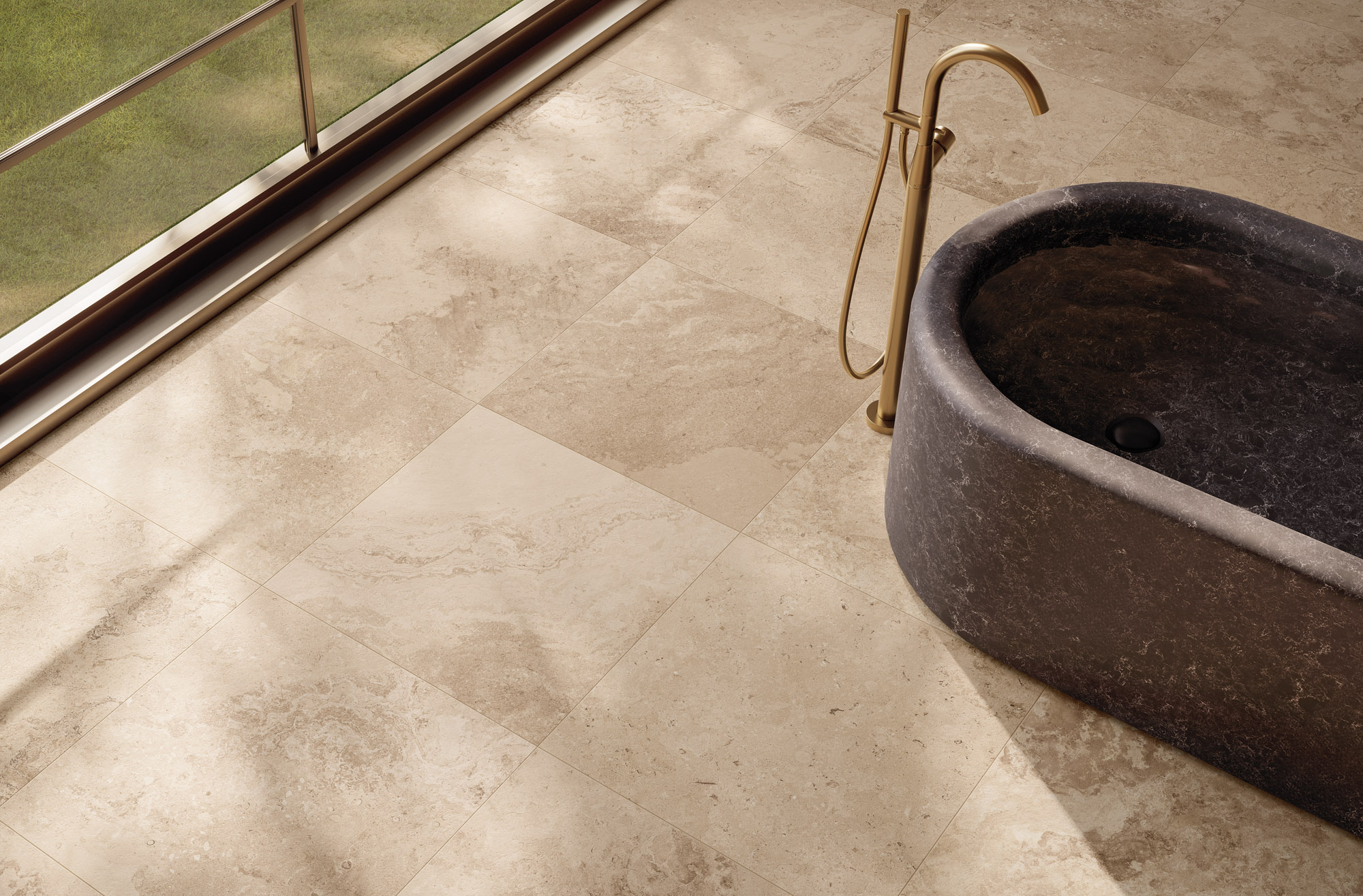 Solithe ist eine Feinsteinzeugfliesenkollektion von Novoceram, die aus einer Auswahl typischer französischer Steine aus dem Zentralmassiv zwischen der Stadt Cahors im Südwesten und der Region Burgund im Nordosten stammt.
