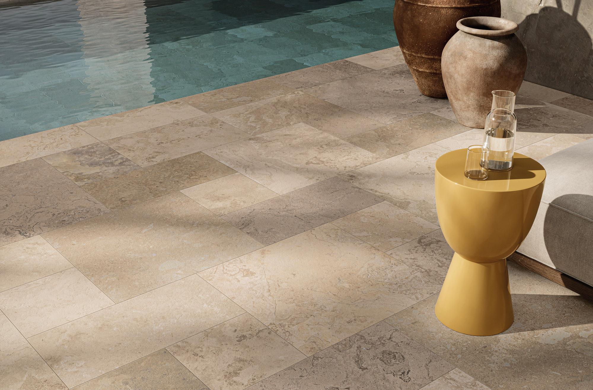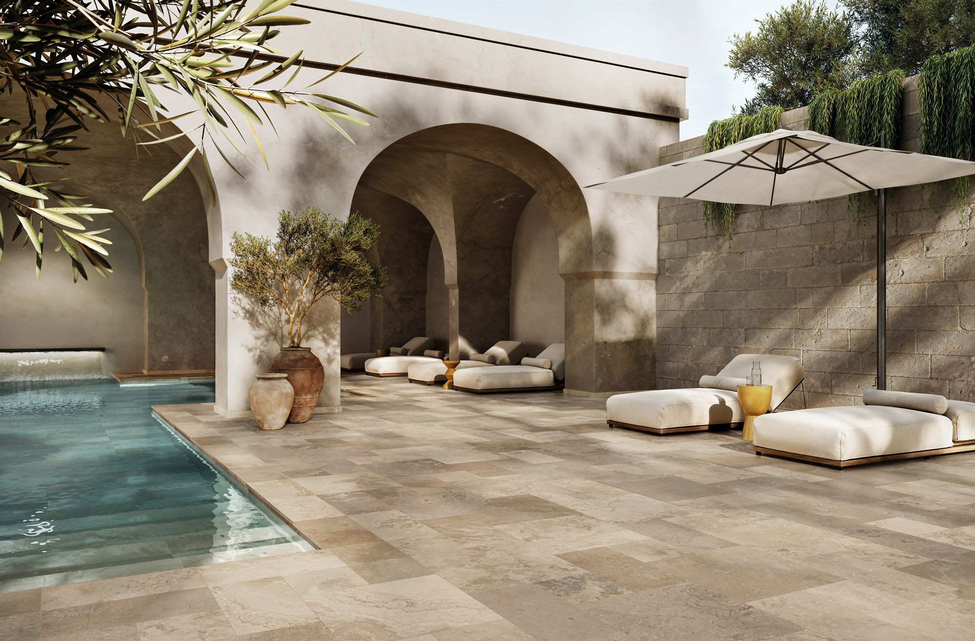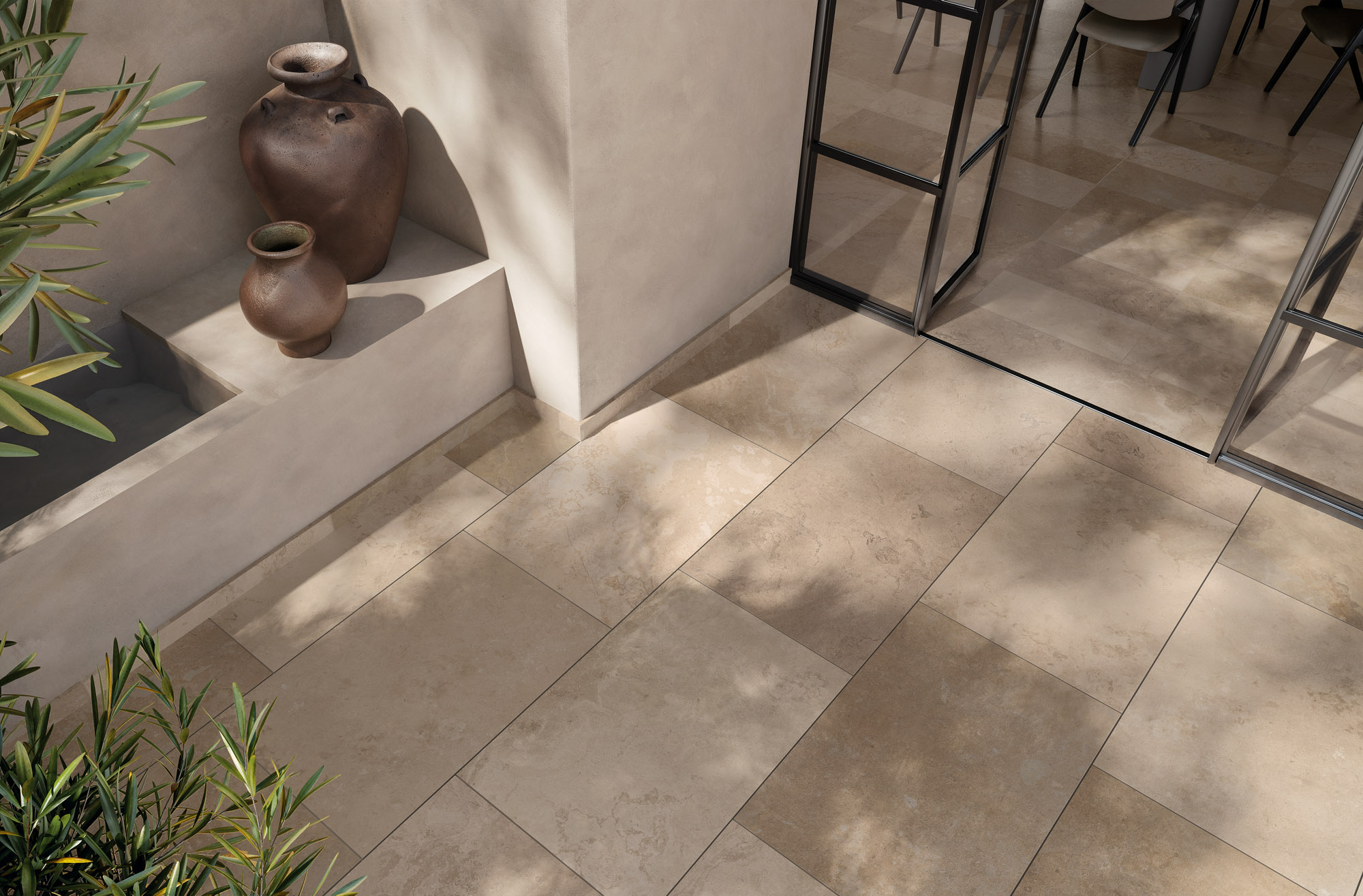 Für den Außenbereich wird die Palette durch die Formate 60×90 Outdoor Plus und 60×60 Outdoor Plus in 20 mm Dicke mit strukturierter Oberfläche und R11-C-Rutschfestigkeit ergänzt.