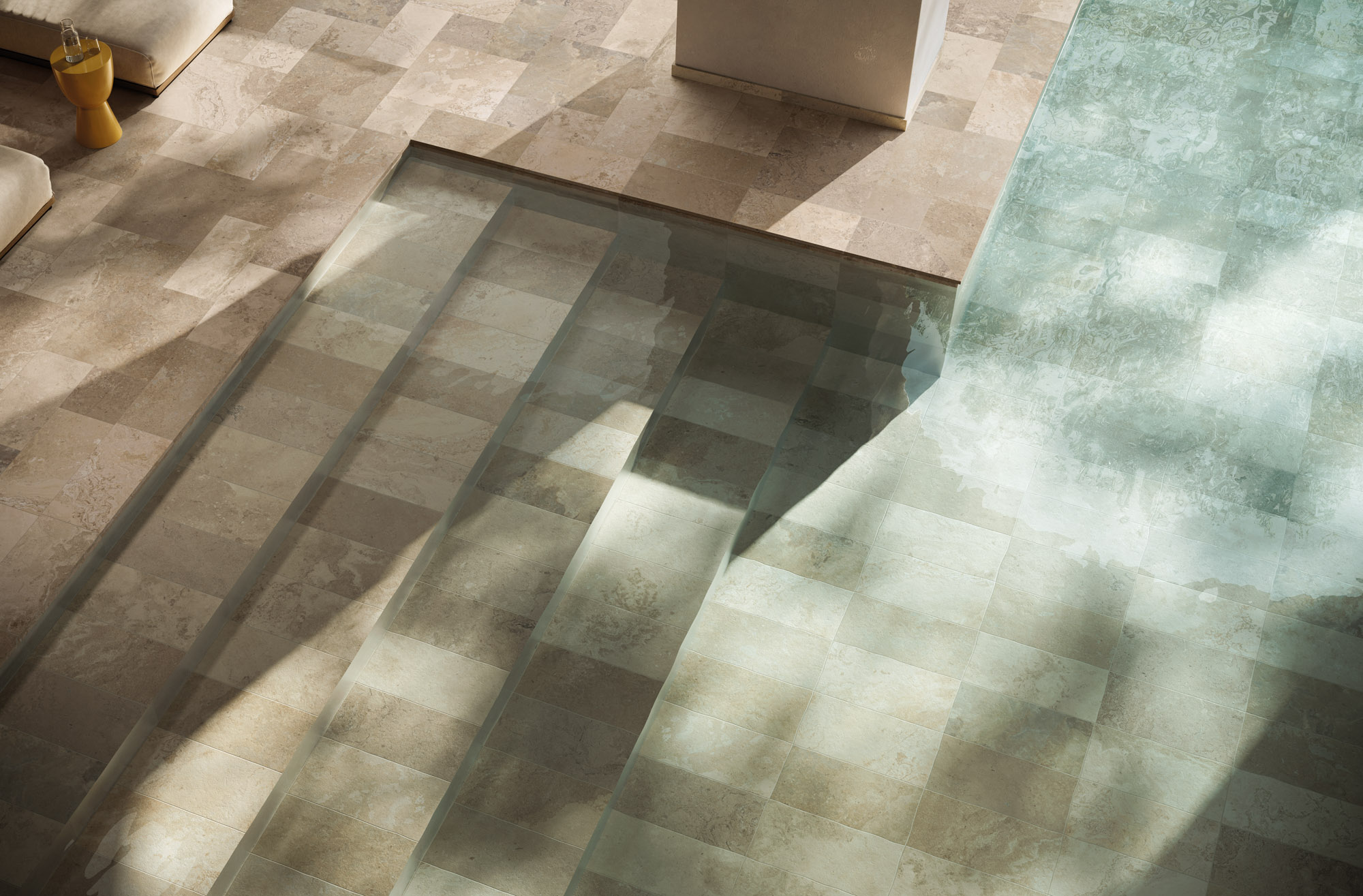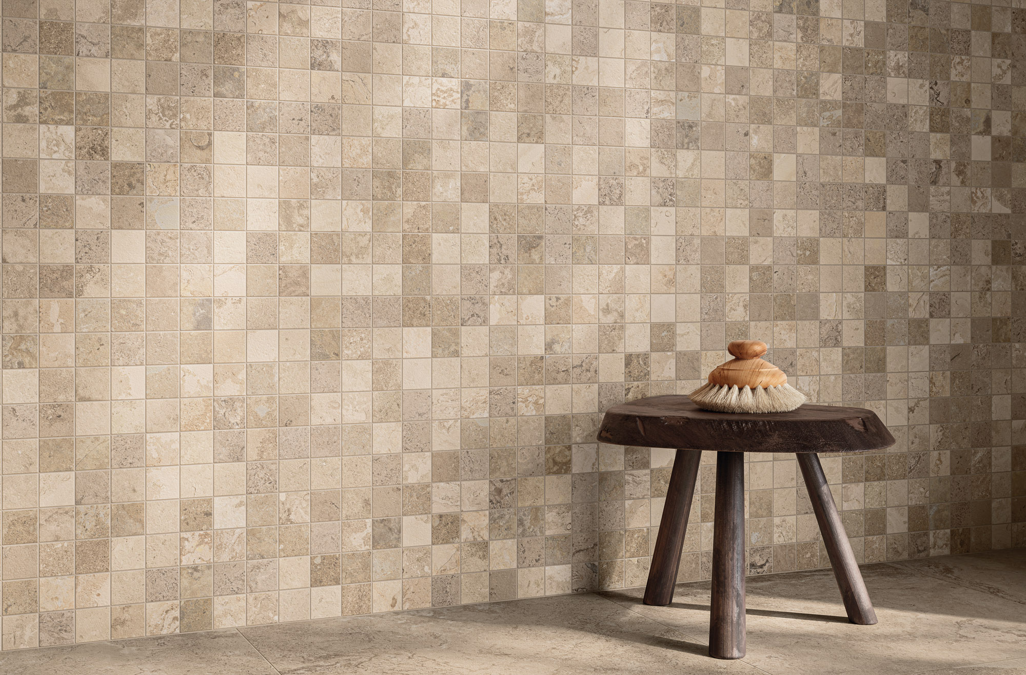Solithe wird in der Version Naturel angeboten, die alle Nuancen und komplexen Schattierungen beibehält, die für die Originalsteine charakteristisch sind, wobei ihr ausgeprägterer Geschmack respektiert wird; und in der Version Clair, einem Vorschlag, der die Farbvielfalt abmildert, indem er sie in einem einheitlicheren Ton neu zusammensetzt, der von subtilen warmen Nuancen bewegt wird, ohne auf den grafischen Reichtum zu verzichten.