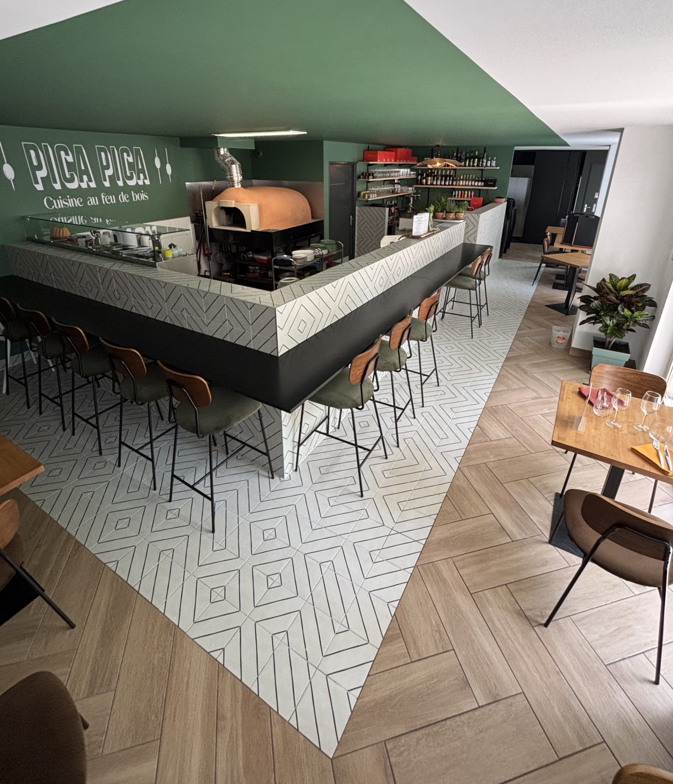 In La Roche-de-Glun wurde das Restaurant PICA PICA im Jahr 2025 neu gestaltet, um die Räume zu strukturieren und gleichzeitig eine starke visuelle Identität zu schaffen.
