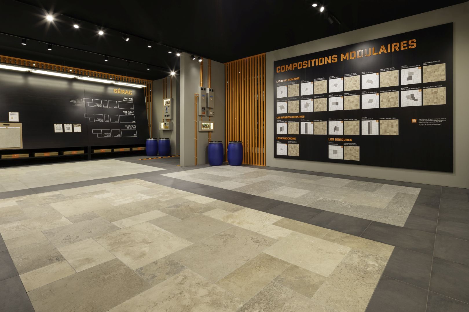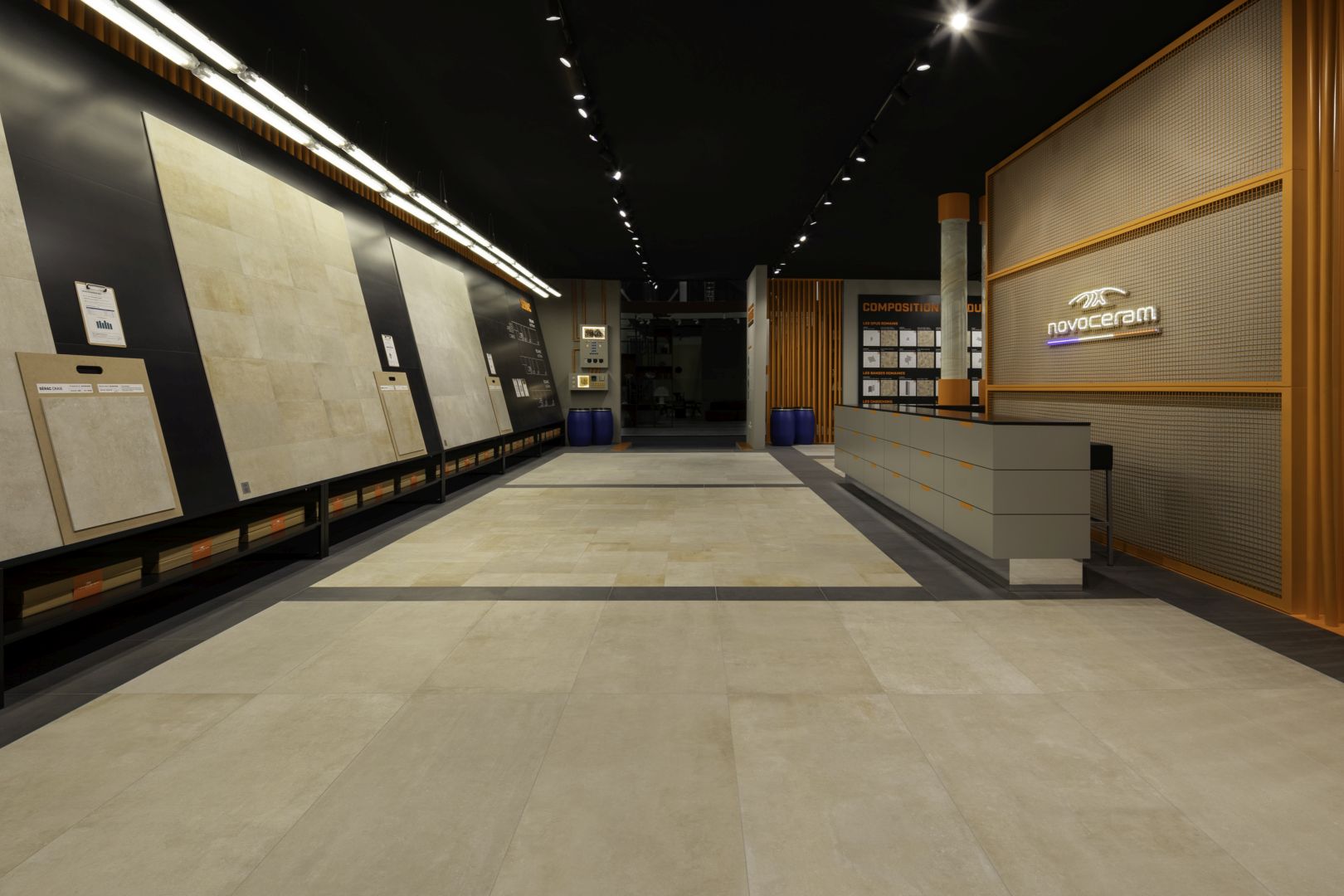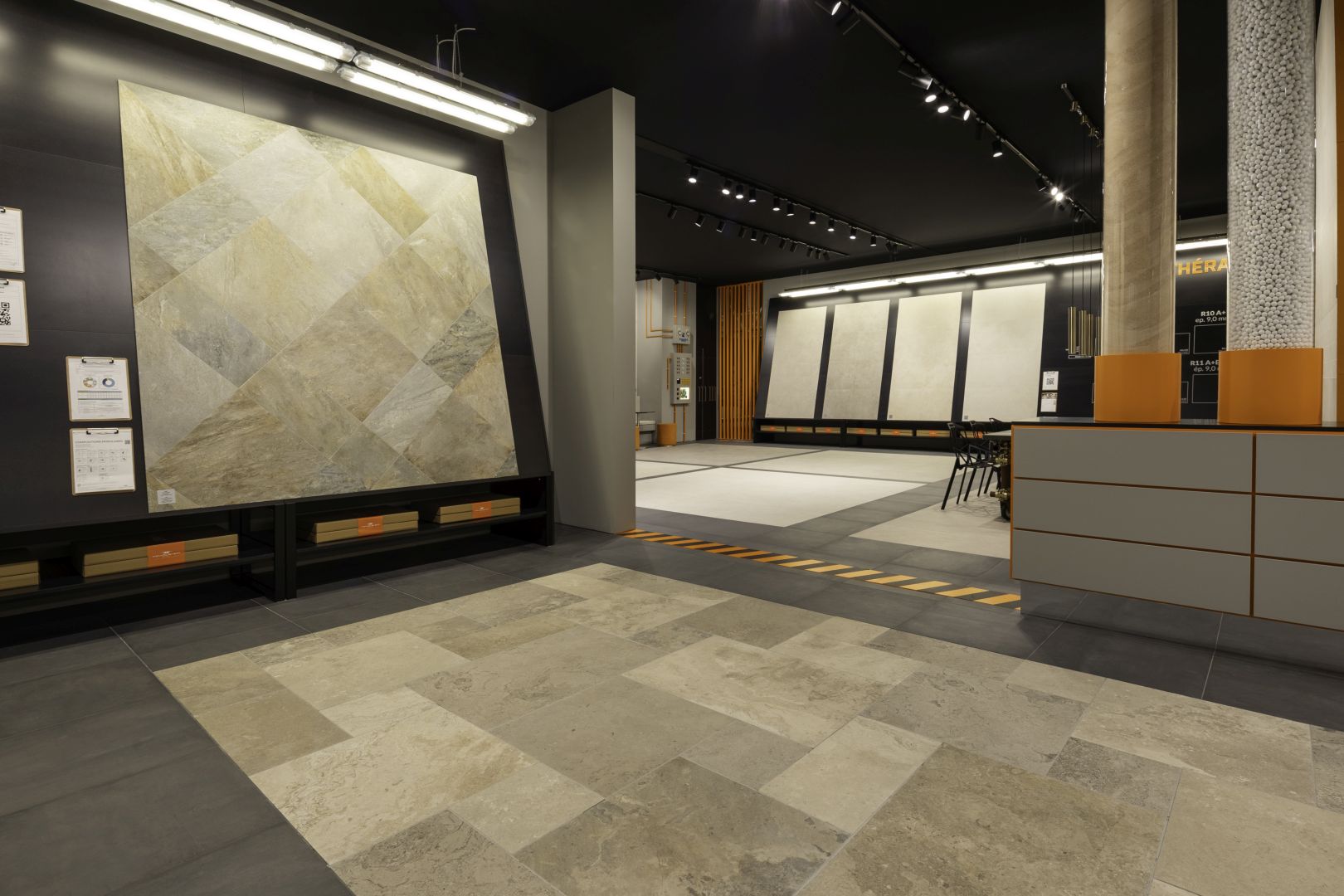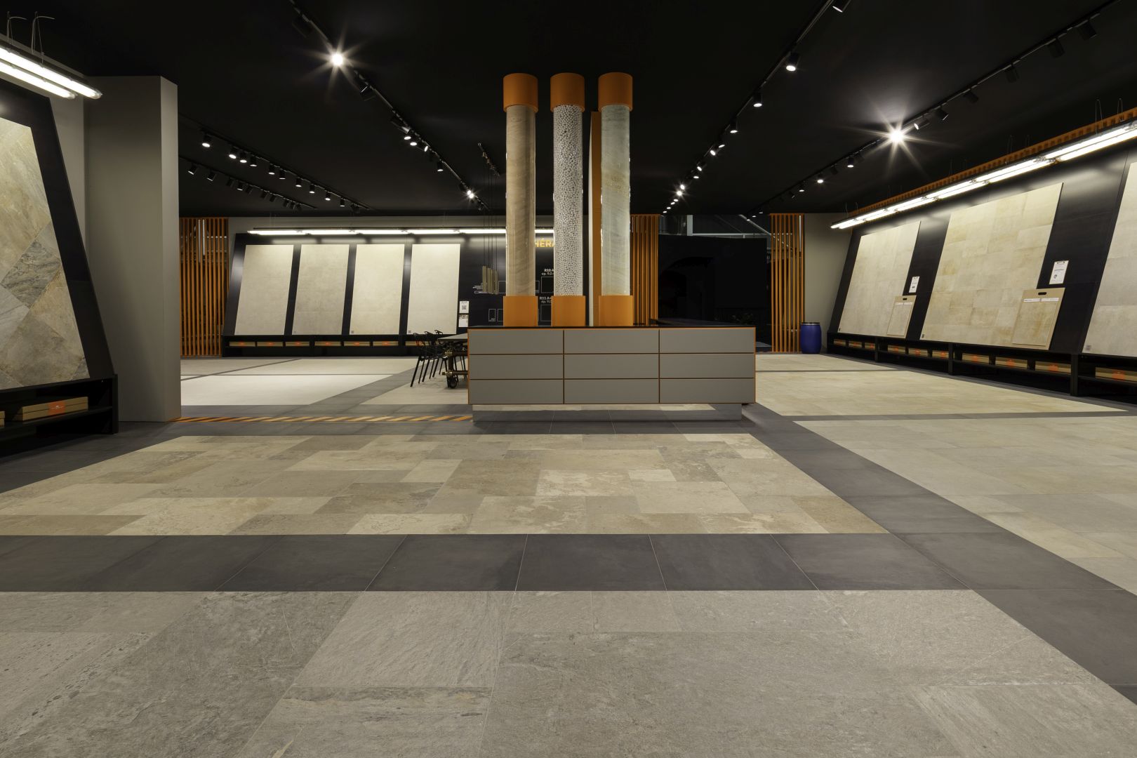 Zwischen industriellen Linien, Werkstattelementen und Anspielungen auf das keramische Know-how präsentiert sich der Raum wie eine neu erfundene Fabrik. Hier ist jede ausgestellte Fliese nicht nur ein fertiges Produkt, sondern Zeuge eines Prozesses: einer geduldigen, präzisen und leidenschaftlichen Verwandlung.
