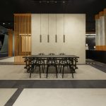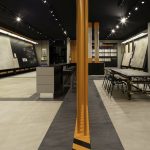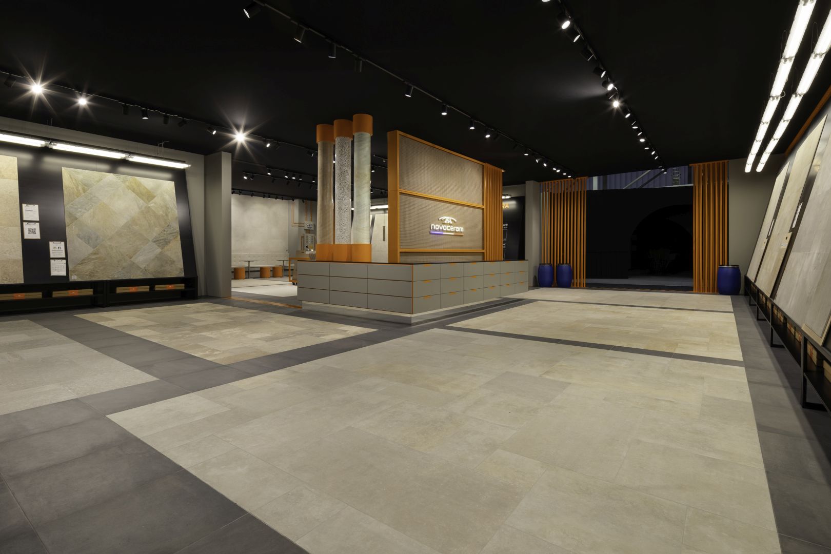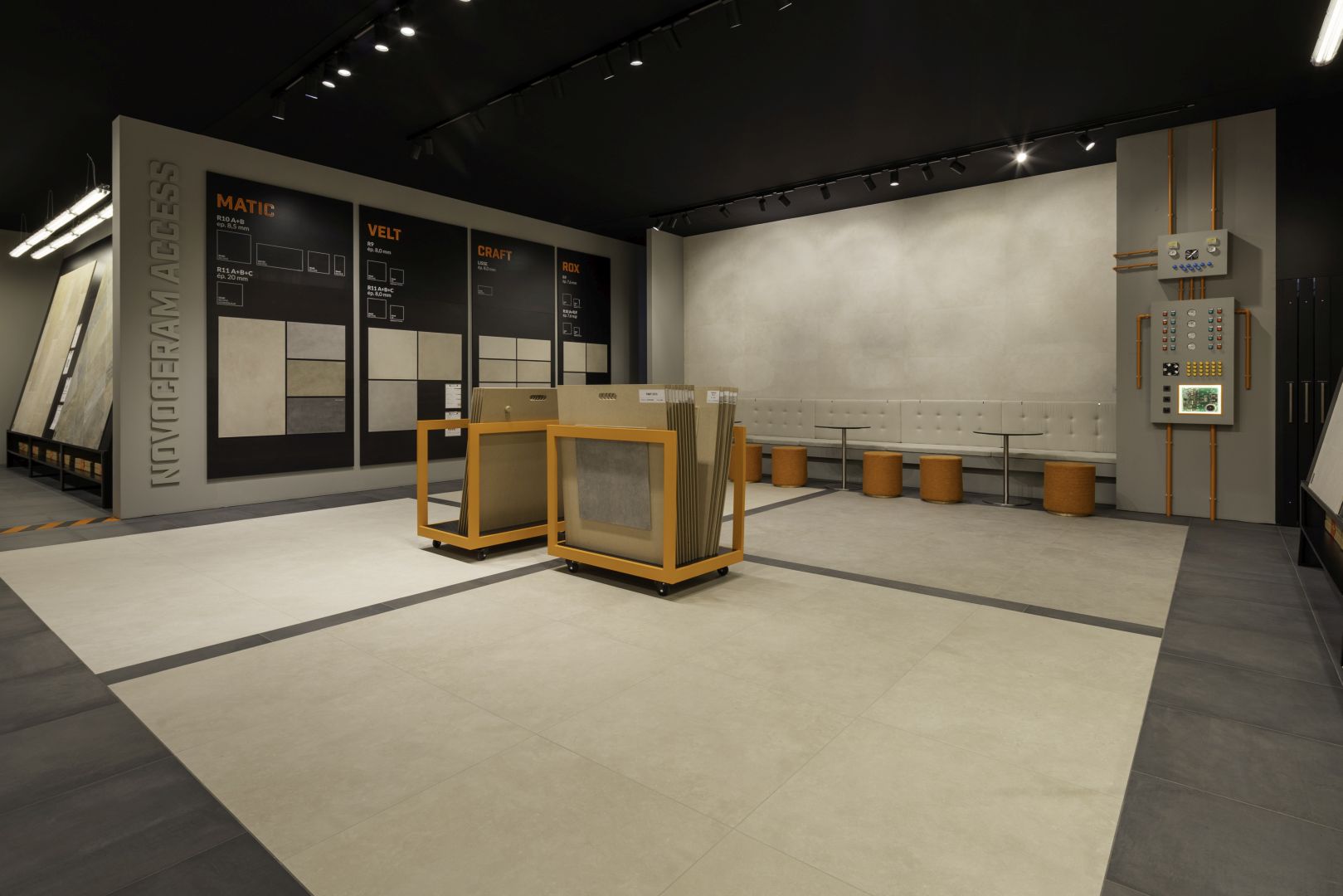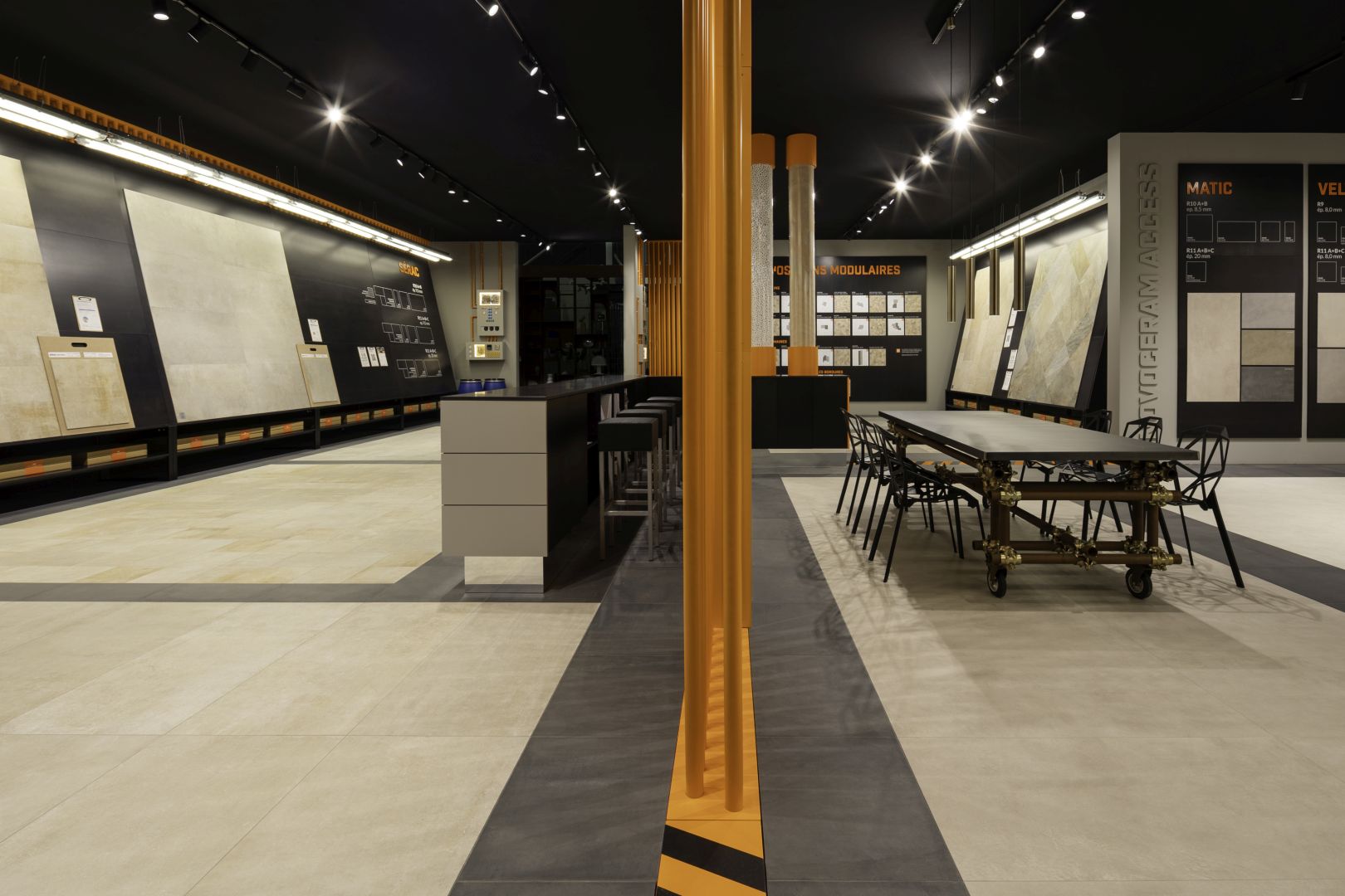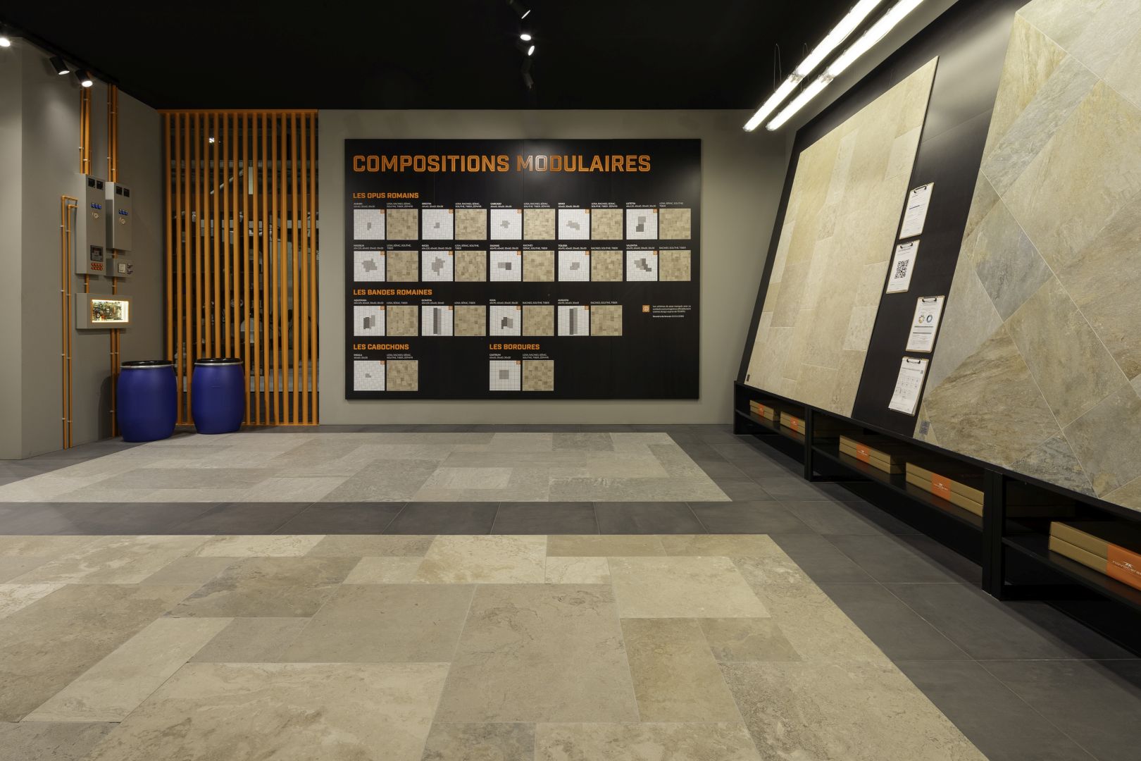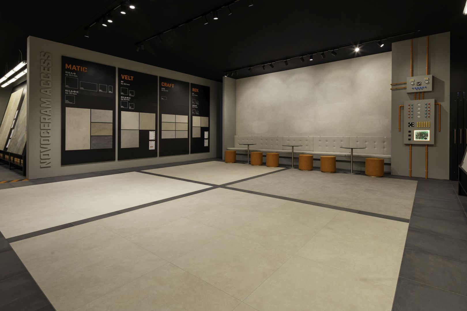 Zwischen industriellen Linien, Werkstattelementen und Anspielungen auf das keramische Know-how präsentiert sich der Raum wie eine neu erfundene Fabrik. Hier ist jede ausgestellte Fliese nicht nur ein fertiges Produkt, sondern Zeuge eines Prozesses: einer geduldigen, präzisen und leidenschaftlichen Verwandlung.