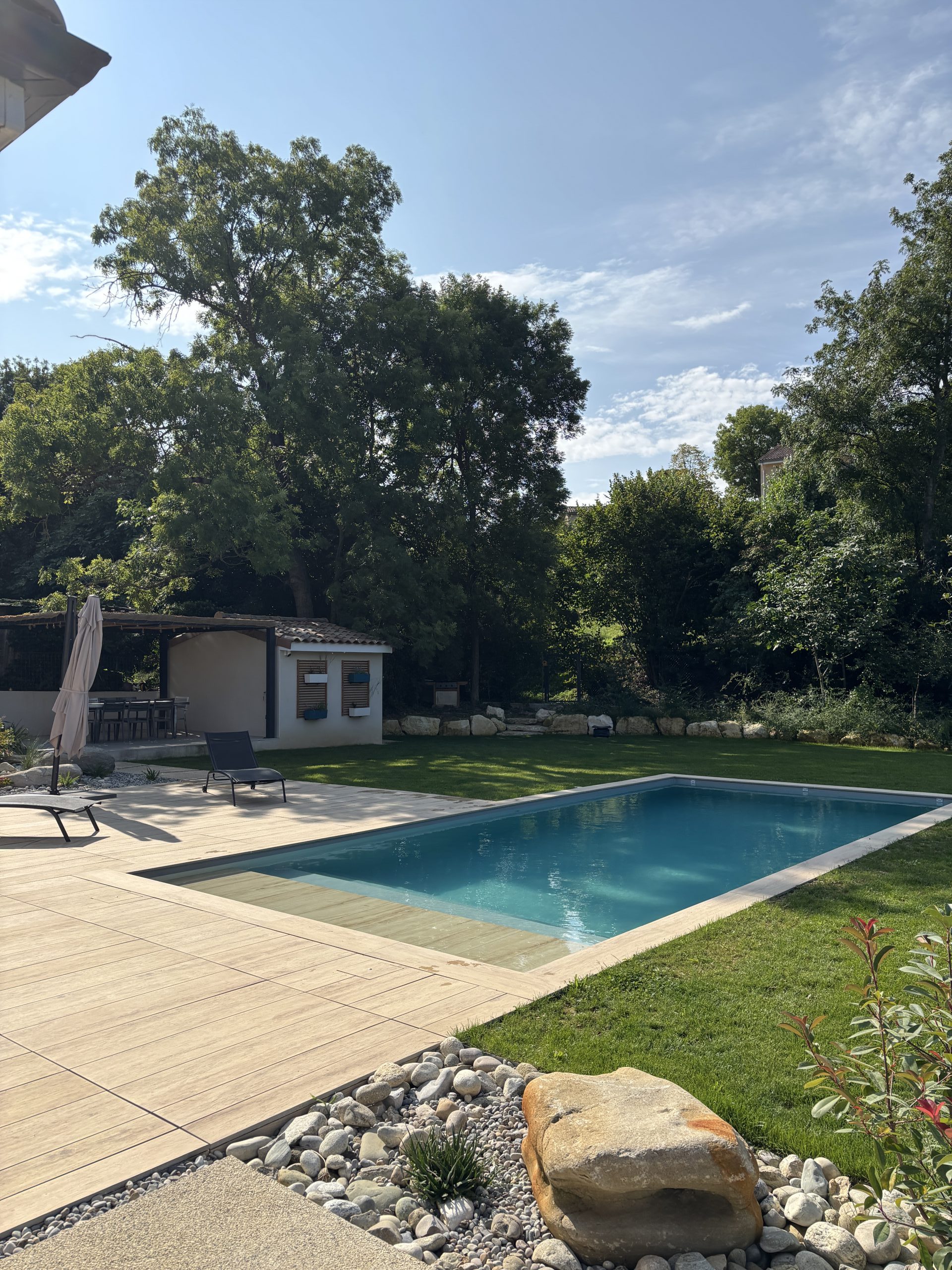 In der Drôme hat Cédric Pierre Paysage im Jahr 2025 eine komplette Außenanlage mit einem Schwimmbad realisiert, die als funktionaler und sofort nutzbarer Lebensraum konzipiert wurde.
