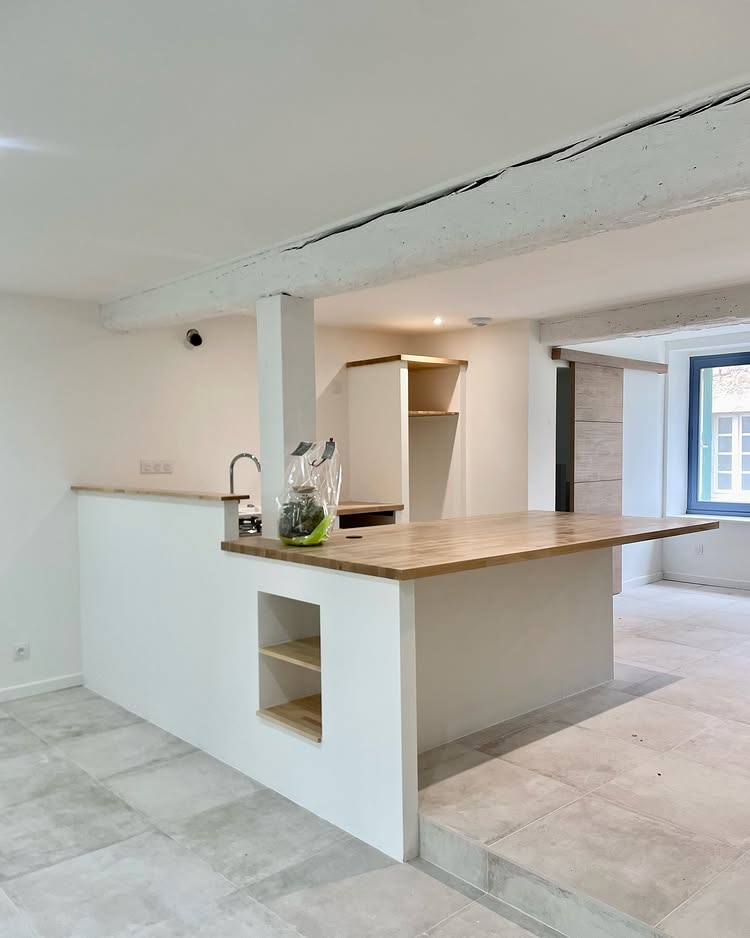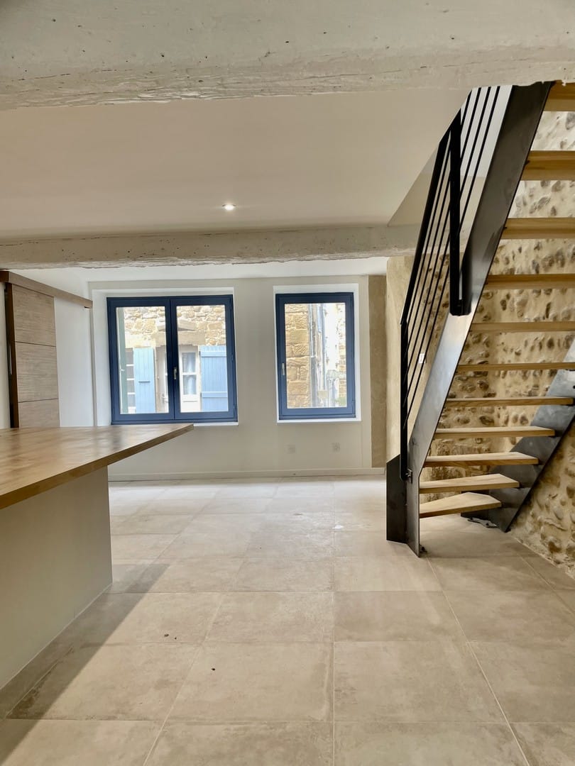 In Alixan in der Drôme hat Colombine Viallet Architecte die Renovierung eines alten Hauses durchgeführt, das sich durch seine sichtbaren Steinmauern auszeichnet, die im Rahmen des Projekts erhalten und hervorgehoben wurden.